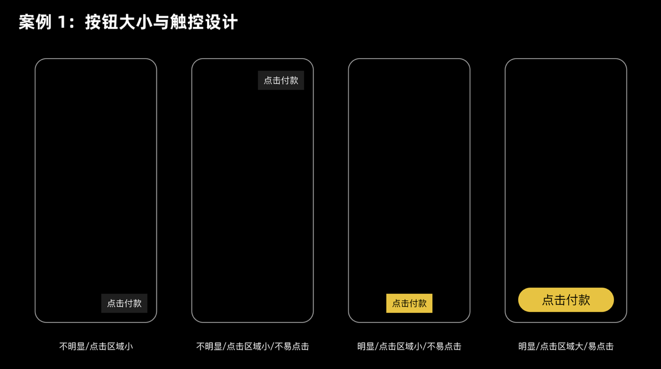 比如支付頁面的 “確認(rèn)付款” 按鈕,幾乎所有 APP 都會把它設(shè)計成頁面中最大、最醒目的元素,不僅尺寸足夠,還會放在拇指容易觸及的區(qū)域(如手機(jī)下半屏)。這樣一來,用戶無需猶豫就能快速點擊,既減少誤操作風(fēng)險,也間接提升了支付轉(zhuǎn)化率。