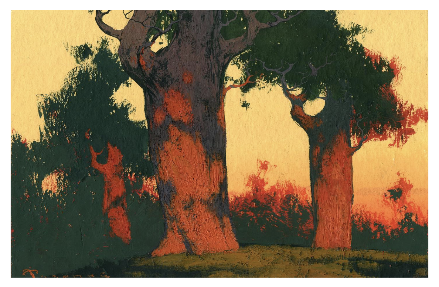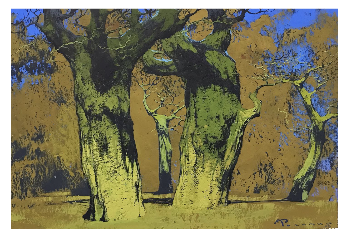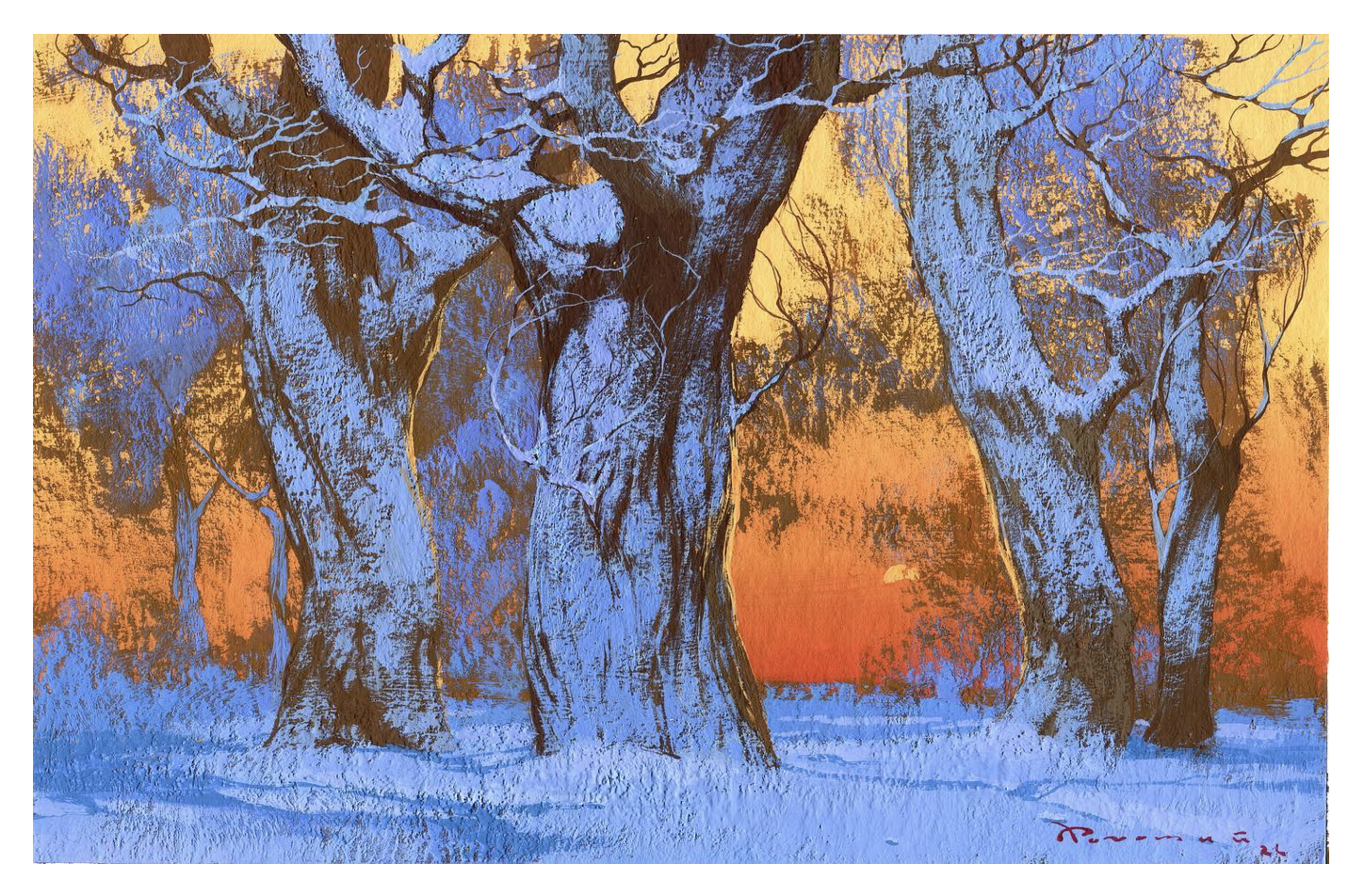 Artem Rohovyi 的創作核心,是對冬日枯樹的深度描摹。在他筆下,枯樹不再是生命凋零的象征,而是冬日浪漫的 “骨架”。