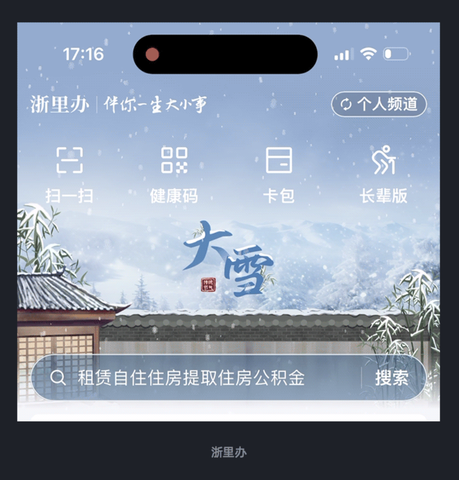 產品的溫度往往體現在場景化的細節中,應景式背景設計能讓用戶在特定時刻感受到專屬關懷。政務 App “浙里辦” 深諳此道,在春節、中秋等傳統節日,或是立春、冬至等節氣當天,會同步更新頂部視覺區域的背景。