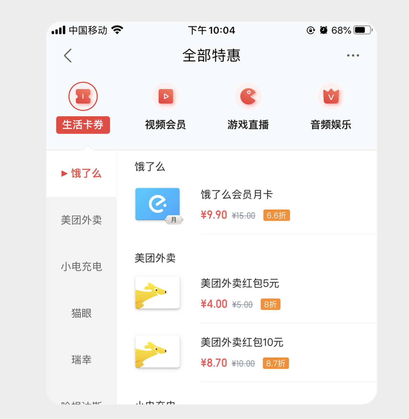 采用標(biāo)題與副標(biāo)題上下布局的形式,副標(biāo)題精煉提煉核心信息或解釋標(biāo)題含義,通過顏色變化區(qū)分選中與未選中狀態(tài)。像中國移動的紅包卡券頁面,標(biāo)簽頁用 “券”“紅包”“卡” 作為標(biāo)題,搭配簡潔副標(biāo)題補(bǔ)充說明,用戶無需點(diǎn)擊就能快速了解各標(biāo)簽下的內(nèi)容,提升操作效率;基金產(chǎn)品的 “一筆投”“定投” 標(biāo)簽頁,也通過副標(biāo)題點(diǎn)明 “便捷”“穩(wěn)健” 的核心差異,幫助用戶快速做選擇。